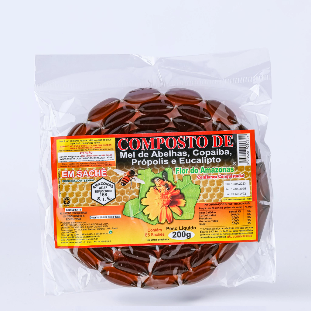 Origem: Produzido artesanalmente pela Feira do Mel – Flor do Amazonas.